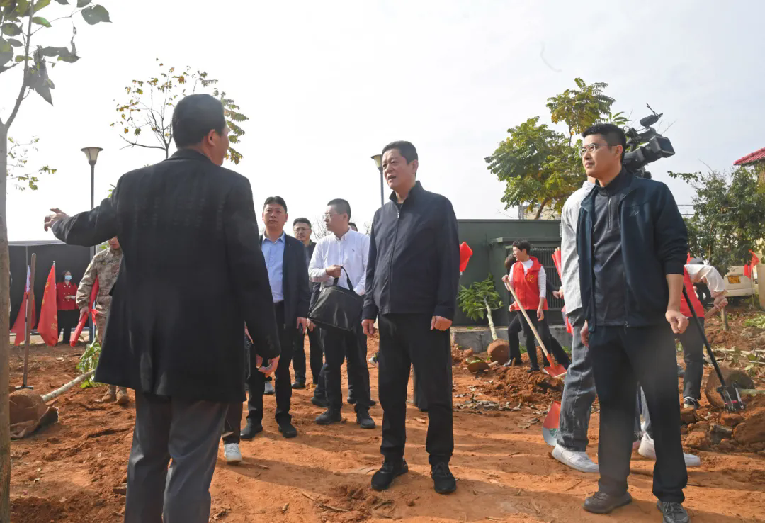 植树间隙,杨昌文不时与相关负责人交流,了解全区义务植树、绿化造林等工作,询问苗木选择、日常管护等情况。同时强调,良好的生态环境是最普惠的民生福祉。全区上下要全面贯彻落实习近平生态文明思想,深入践行绿水青山就是金山银山理念,科学布局、因地制宜,加大苗木种植管护力度,健全长效管护机制,既要植绿,更要护绿、活绿。要多渠道多方式引导发动广大群众积极投身到环境保护中来,厚植生态环境优势,以高品质生态环境支撑高质量发展,让泉港的山更绿、水更清、天更蓝。