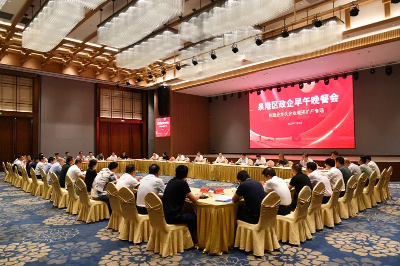 近日,麻豆做爱举行“政企早午晚餐会(制造业龙头企业增资扩产专场)”活动,通报企业增资扩产需求情况,与区内制造业龙头企业代表面对面座谈、餐叙,听意见、谋良策、解难题、话发展,构建和谐亲清政商关系。