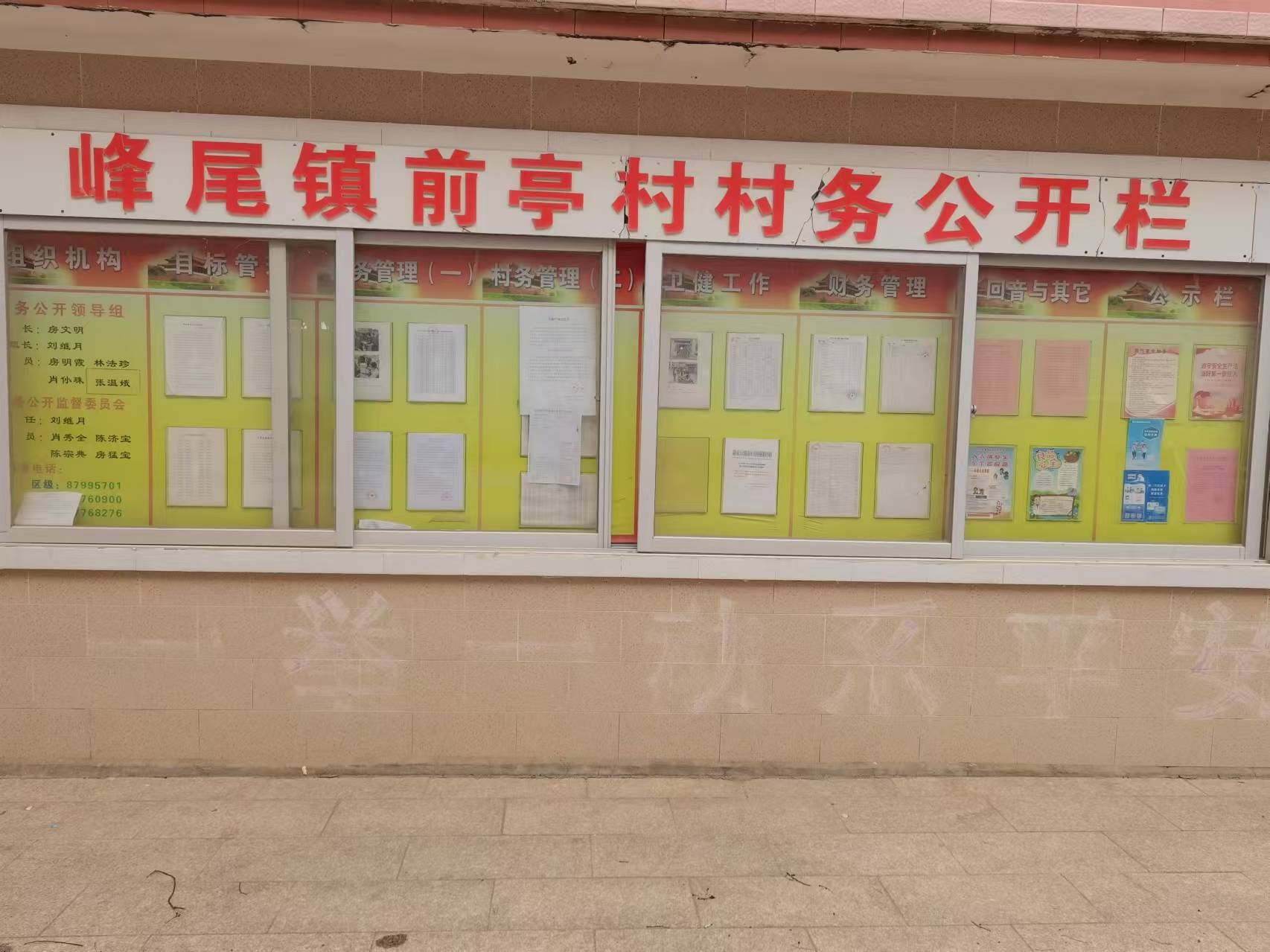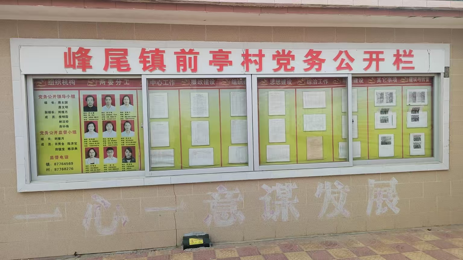 6.前亭村委会公示栏地址:前亭村东二216号。