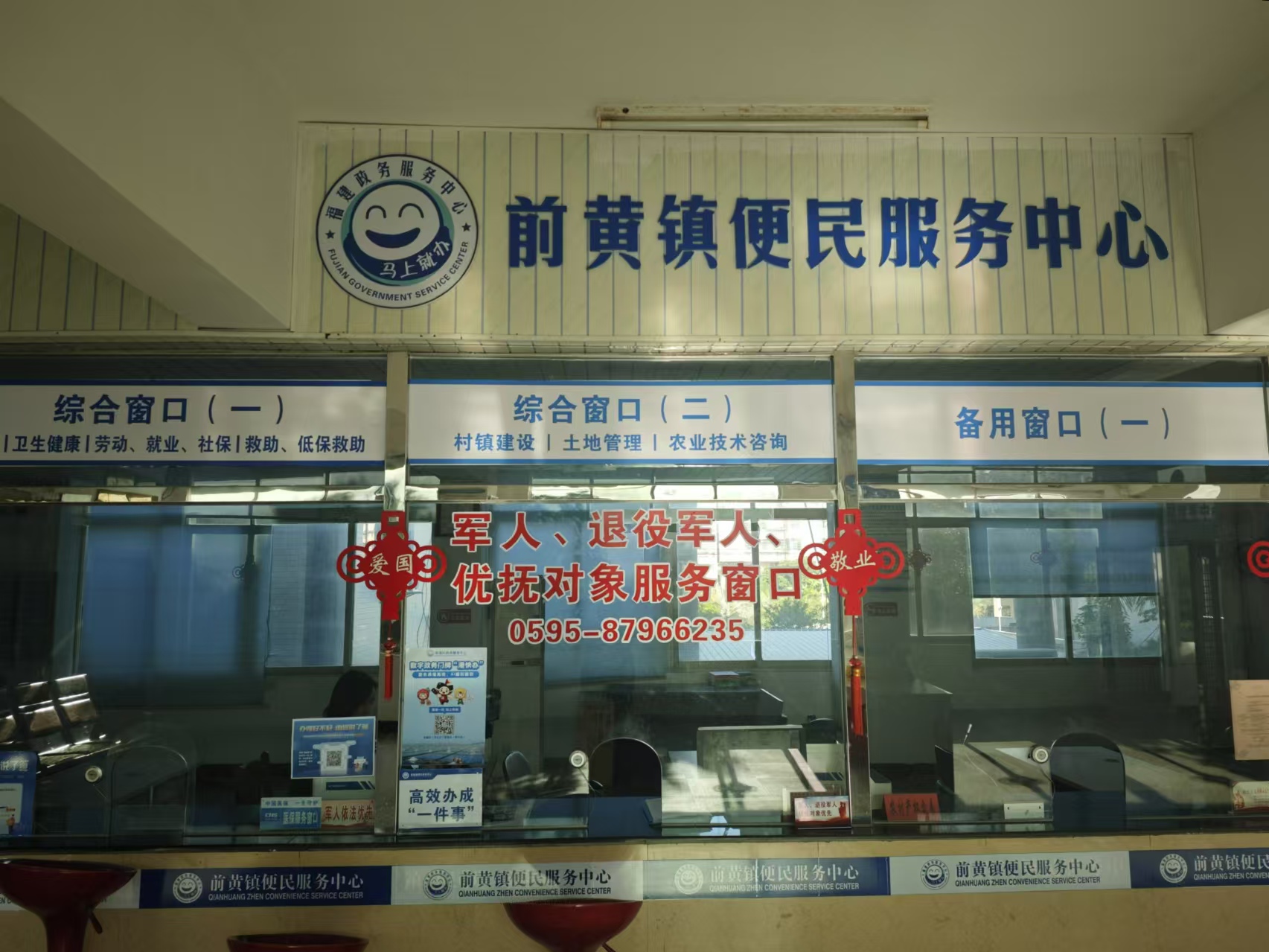 前黄镇便民服务中心下设医保、综合等服务窗口,选配业务熟、能力强的干部驻点办公,提供“一站式”服务。大厅设置政务公开体验区、自助服务一体机,提供了简介、办事指南、办件查询、预约服务等自助查询服务功能,为有需求的群众提供自助平台服务。
